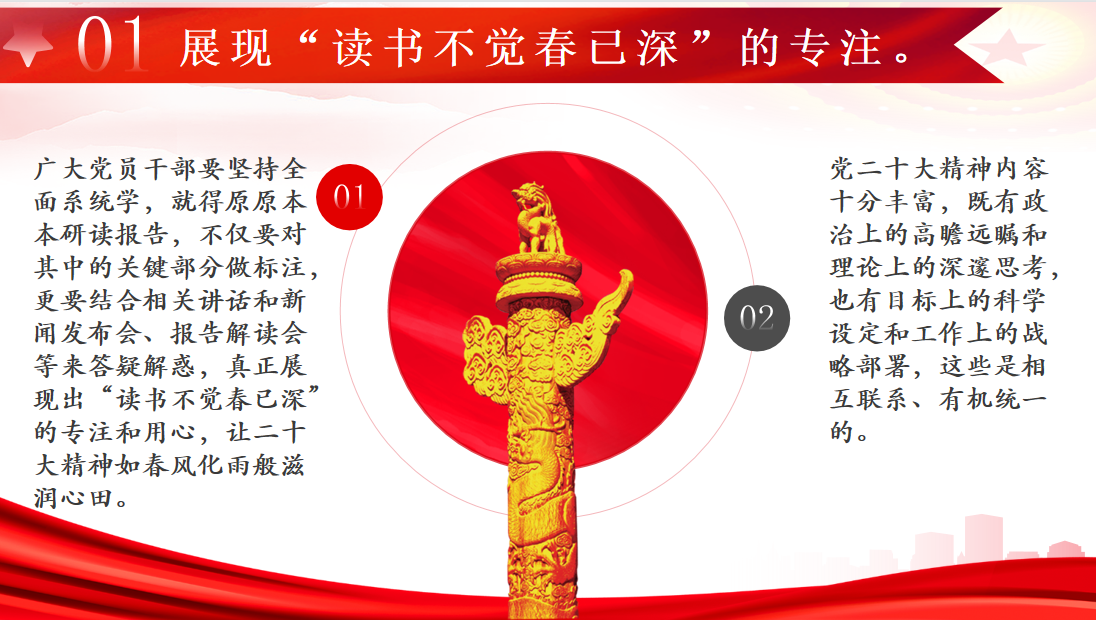 支部师生党员们我们一定把学习好贯彻好落实好党的二十大精神作为最重大的政治任务,增强“四个意识”、坚定“四个自信”、做到“两个维护”,以昂扬的精神状态、务实的工作作风全面贯彻落实党的二十大精神,踔厉奋发、勇毅前行、团结奋斗!