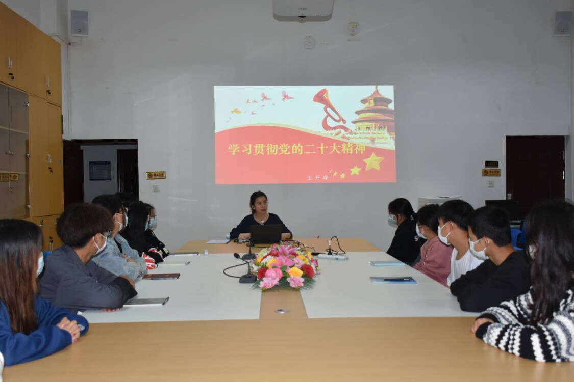课上,王开晔同志从“党的二十大重大意义”“六个坚持”“中国式现代化的本质要求”“五个重大原则”等多个方面,给同学们上了一节生动的专题党课。她强调,作为新时代大学生应继承弘扬伟大建党精神,永远跟党走,练就本领,提升综合素养。