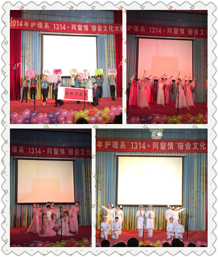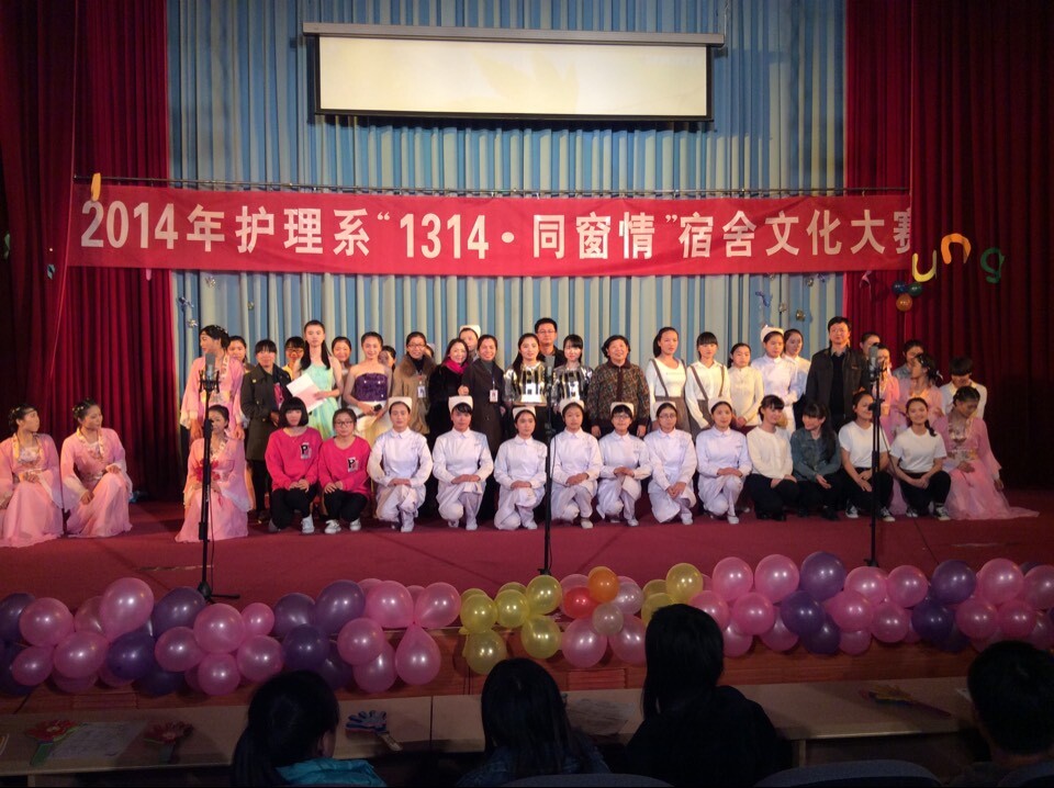 为鼓励我系大学生团结共进,树立榜样,营造温馨积极的宿舍文化氛围,我院护理系于2014年12月10日晚7:00在学术厅隆重举办了2014年三好生表彰大会暨护理系“1314•同窗情”宿舍文化大赛