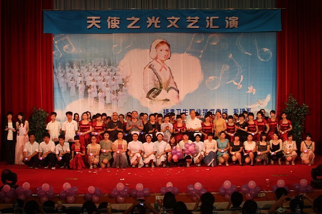 为了弘扬5.12护士精神,培养学生健康的审美情趣和良好的艺术修养,引导广大学生崇尚真、善、美,努力提高学生的综合素质,促进学生身心全面和谐发展,我系于2011年5月11日 18:30在学术厅举办了“天使之光”文艺汇演。莅临本次晚会的嘉宾有院党委严肃书记、陈雄副书记、魏立娜副院长、办公室郑力宏主任、学工处黄铭珊处长、院团委邱滚忠书记、护理系党总支谢涛书记、各系团总支负责人及辅导员。