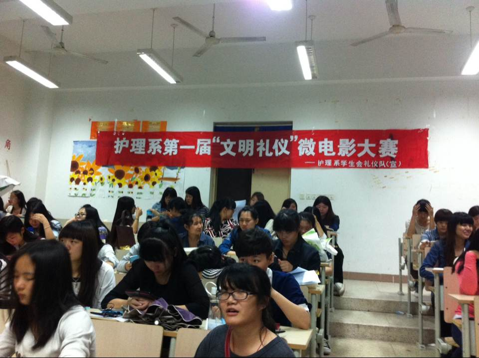 为丰富同学们的课余生活,展现开云大学生健康向上、文明、环保的精神风貌,在我系领导的支持与关心下,在同学们的热情关注下,由护理系学生会主办的以“文明礼仪”为主题的微电影比赛于4月10日19:30-21:20在教学楼214拉开帷幕。