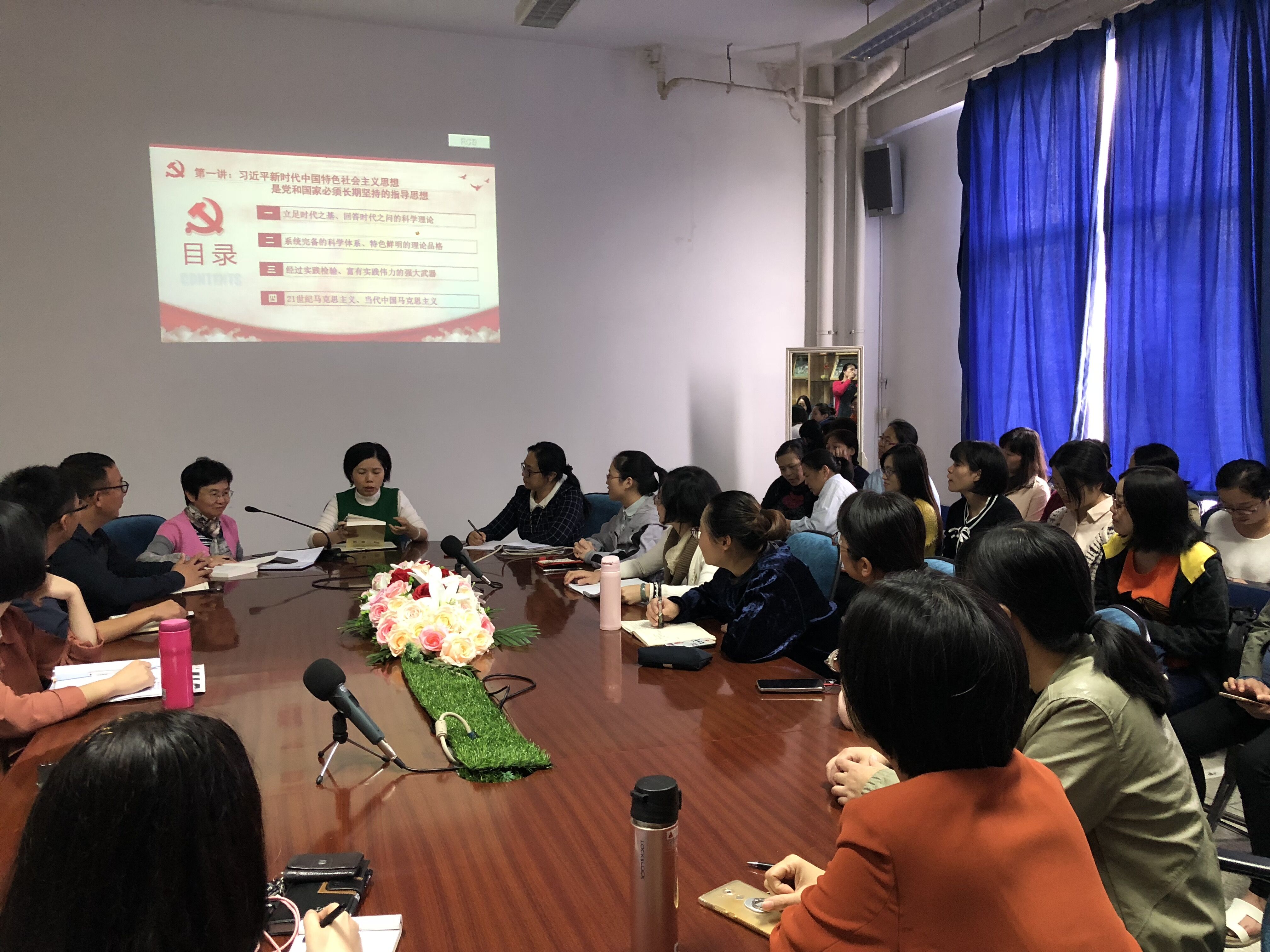 龚海蓉副主任首先在学习会上指出,学习贯彻习近平新时代中国特色社会主义思想是全党全国的首要政治任务。《习近平新时代中国特色社会主义思想三十讲》全面、系统、深入阐释了习近平新时代中国特色社会主义思想的重大意义、科学体系、丰富内涵、精神实质、实践要求,是广大党员、干部、群众学习领会习近平新时代中国特色社会主义思想西乡的重要辅助读物,全体同志要及时、认真地学习。接着,龚海蓉副主任从“立足时代之基,回答时代之问的科学理论”、“系统完备的科学体系,特色鲜明的理论品格”、“经过实践检验,富有实践伟力的强大武器”以及“21世纪马克思主义、当代中国马克思主义”四个方面为我们阐述了为什么习近平新时代中国特色社会主义思想是党和国家必须长期坚持的指导思想。最后,龚海蓉副主任指出,全体教职工要学懂、弄通、做实,原原本本学习,深刻把握思想精髓,切实把思想和行动统一到习近平新时代中国特色社会主义思想上来,真正用习近平新时代中国特色社会主义思想武装头脑、指导实践、推动工作。