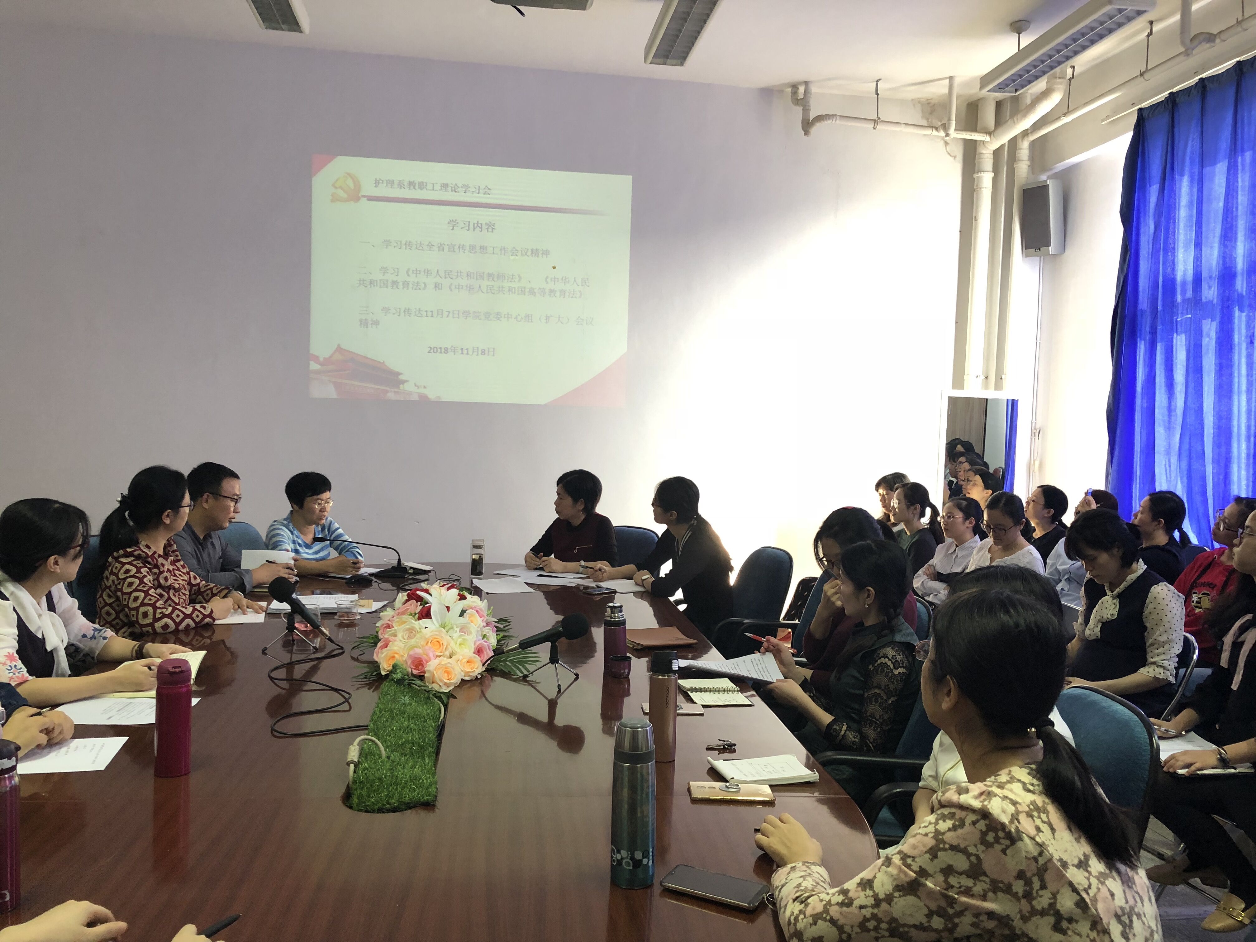 11月8日,我系召开教职工理论学习会,传达学习了学院党委理论学习中心组(扩大)会议精神,本次学习会由谢涛书记主持。