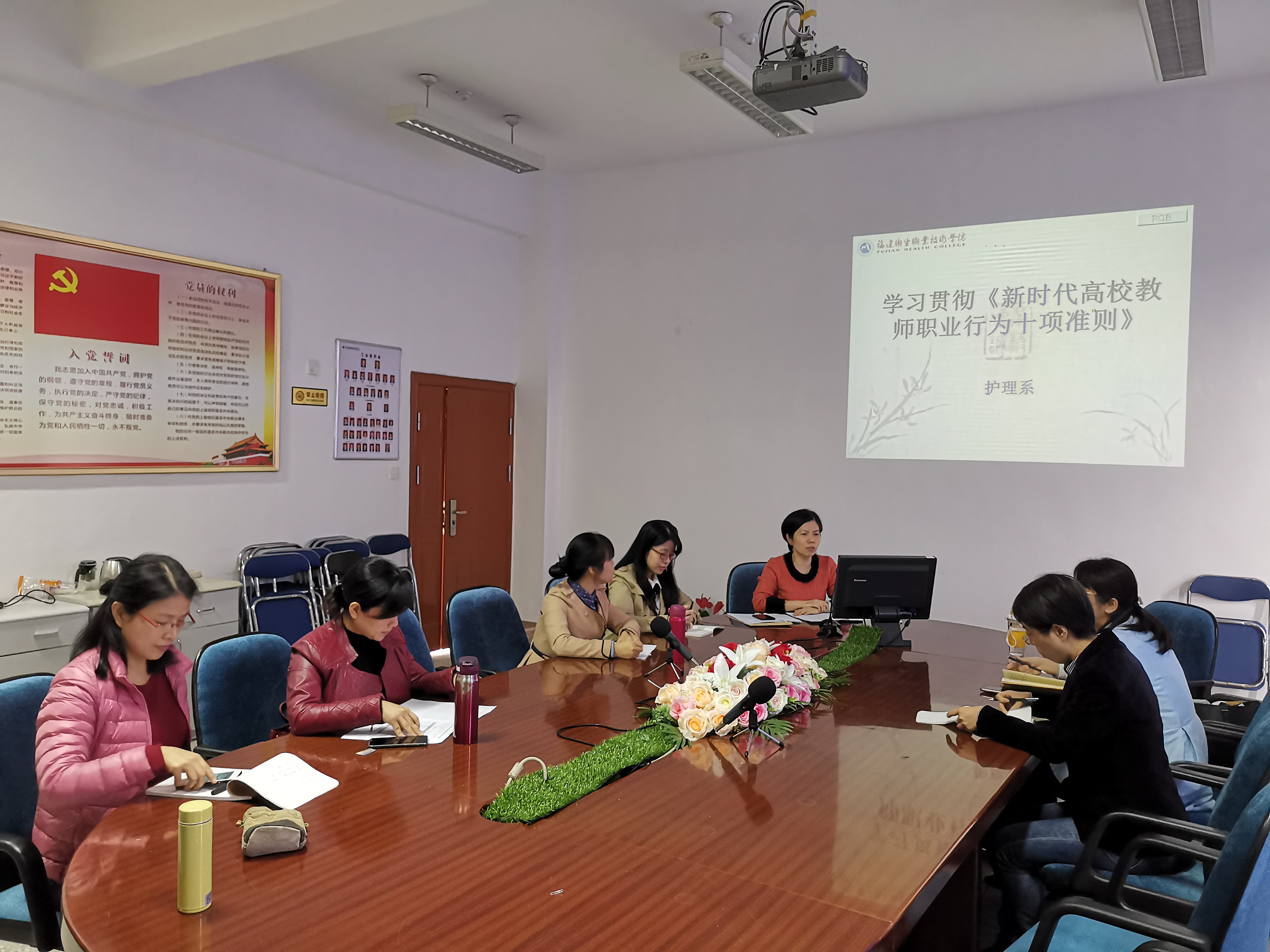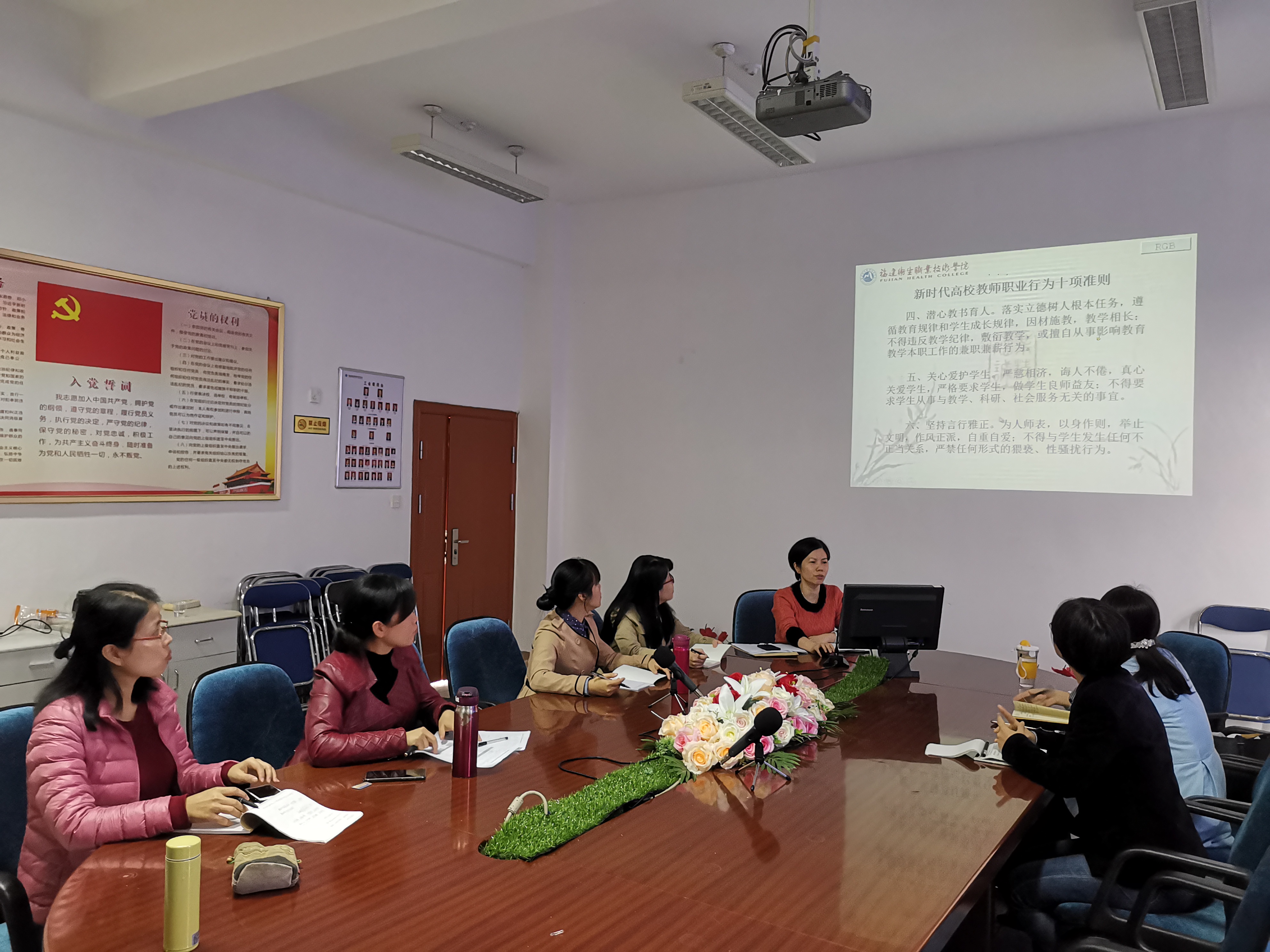 为进一步加强我系师德师风建设,落实立德树人根本任务,确保全体教师遵守高校教师职业基本规范,坚守高校教师职业基本底线,11月22日,我系召开教研室主任例会,组织学习了《新时代高校教师职业行为十项准则》,本次学习由我系龚海蓉副主任主持并领学。