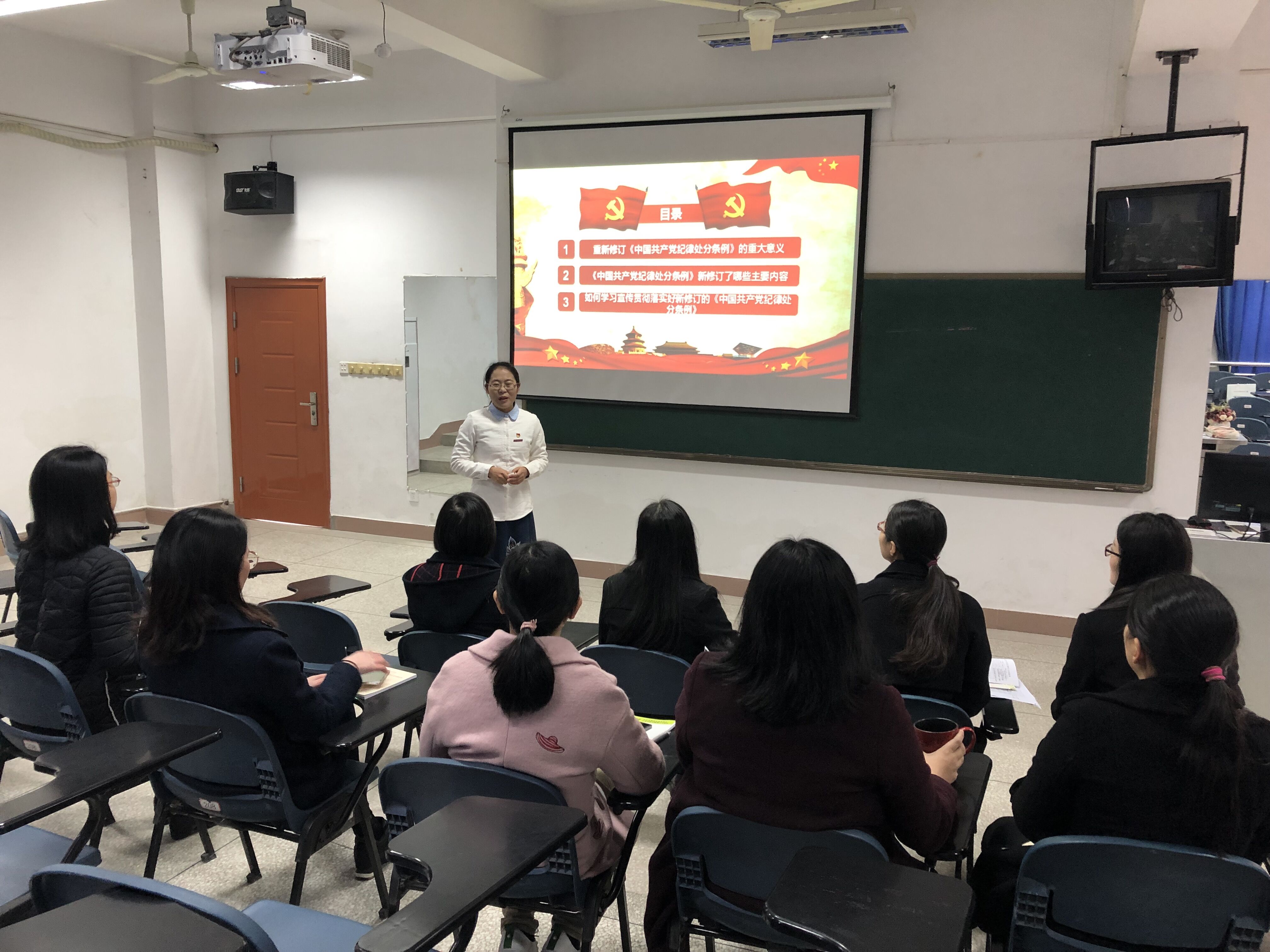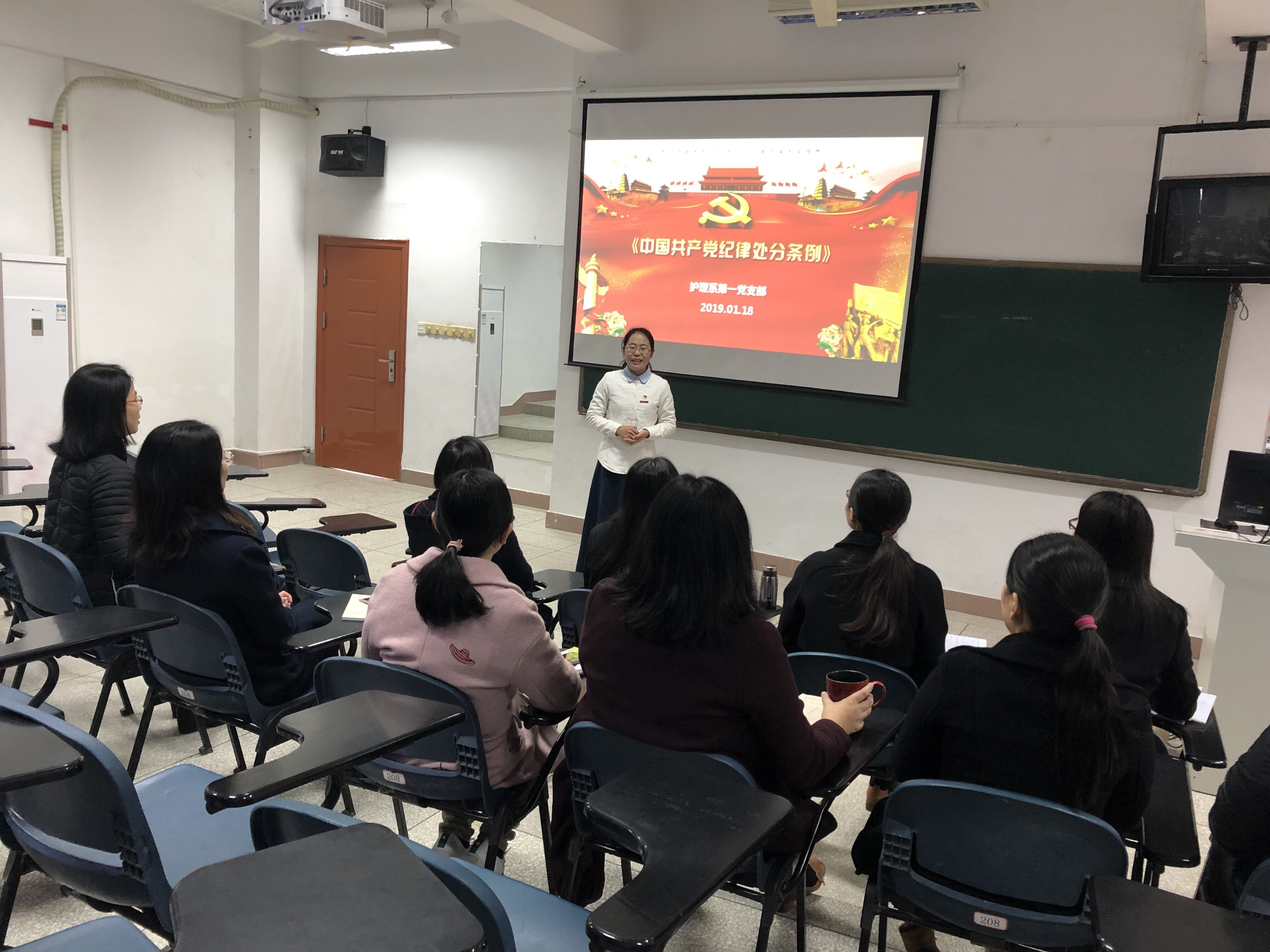 护理系第一党支部于2019年1月18日召开支部党员大会,组织全体党员集中学习《中国共产党纪律处分条例》(以下简称《条例》)。