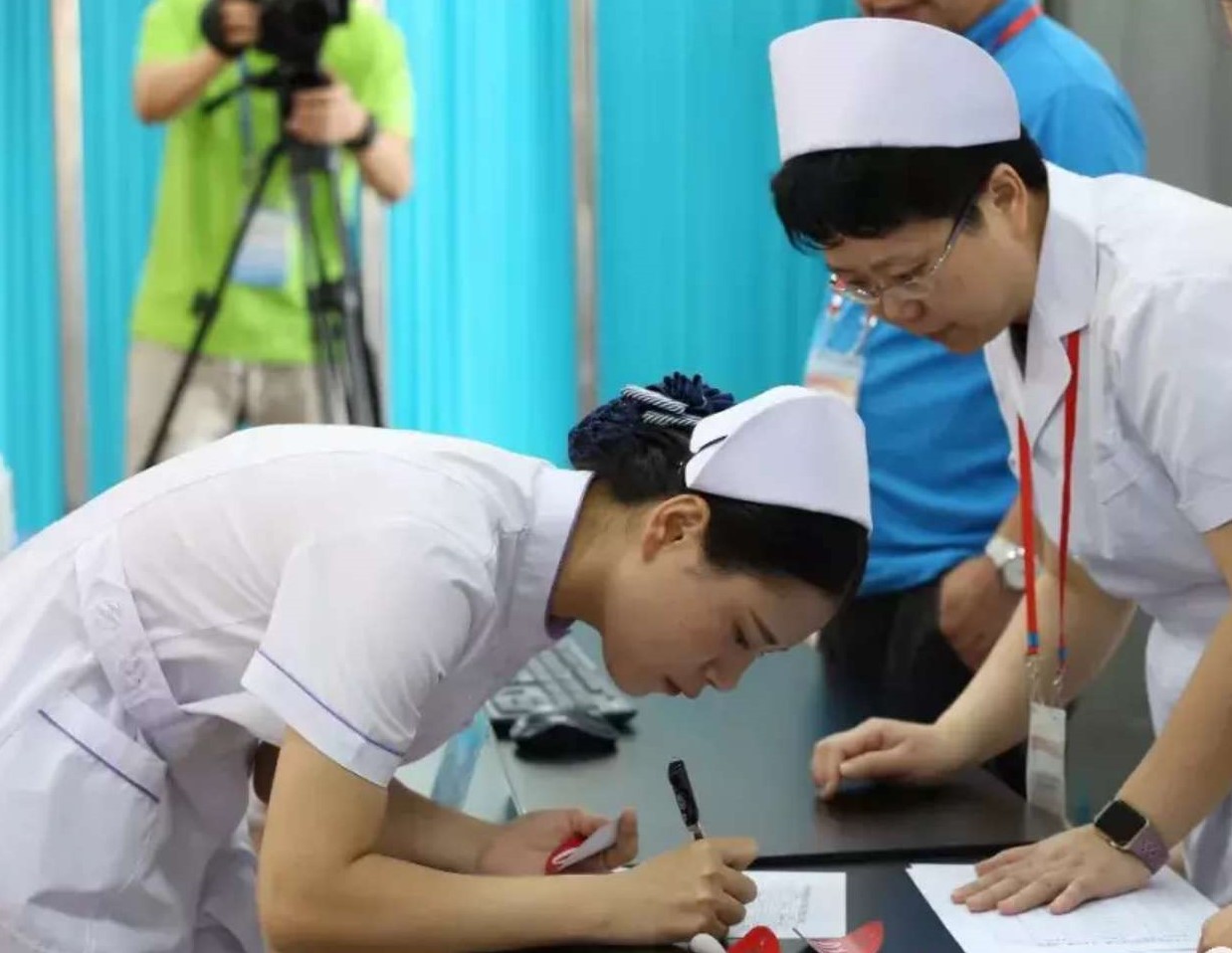 本次大赛由各省、自治区、直辖市经预赛选拔的优秀选手组成代表队,每名选手首先在健康评估室书面完成临床护理案例分析,然后进入操作室根据患者病情及医嘱要求,先后完成右踝扭伤固定包扎、徒手心肺复苏、静脉留置针输液、气道切开护理四项护理技能操作,主要考核选手护理思维判断、分析问题、解决问题的能力,检测选手急救护理技能操作水平及人文职业素养。