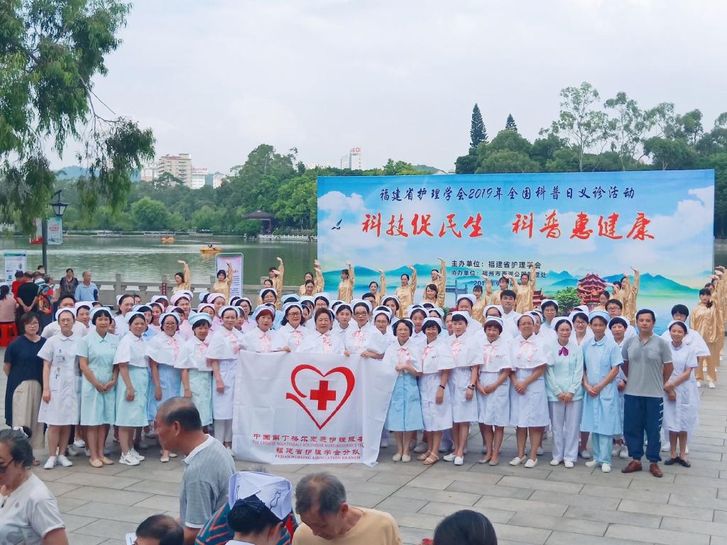 礼赞共和国,智慧新生活,科技促民生,科普惠健康。福建省护理学会2019全国科普日大型义诊活动于9月15号在西湖公园举办,开云在线登录app入口护理系党总支书记谢涛老师带领9位入党积极分子和团学干部前往参加,进行健康知识的宣传。