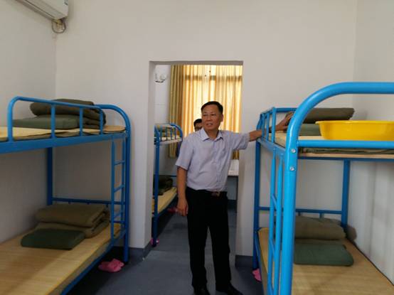 曾书记首先对学生的军训场地、教室、食宿条件等情况进行了督查,并提出在饮食安全卫生、教学条件等方面的具体要求,其次与军训基地及培训方对军训的日常安排、军训细节等方面展开了细致的讨论和敲定,对学生的习惯养成、价值观引导、军训期间的管理、中秋活动的方面提出了更高的要求和意见。