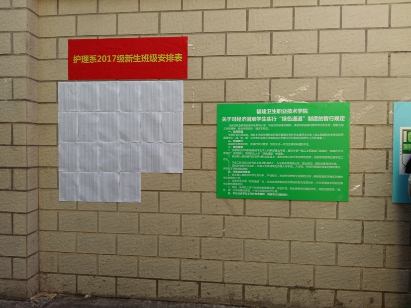 报到当天,结合护理系的实际情况,将报到处设置在3号和5号学生公寓楼下,同时,在过道外墙和各班报到办公桌上均张贴排班名单、报到流程图、学费说明等。在现场,系部领导老师耐心回答新生和家长的各种咨询,介绍护理系办学特色和相关专业的基本情况,并及时为困难学生开设“绿色通道”服务;志愿者们带着新生完成入学的各项手续。护理系热情的志愿者,慈祥的老师以及一切人性化的服务,令远道而来的学生和随行的家长感到由衷的满意。使新生及家长第一时间感受到学校的温暖,为新生和家长留下美好的印象。