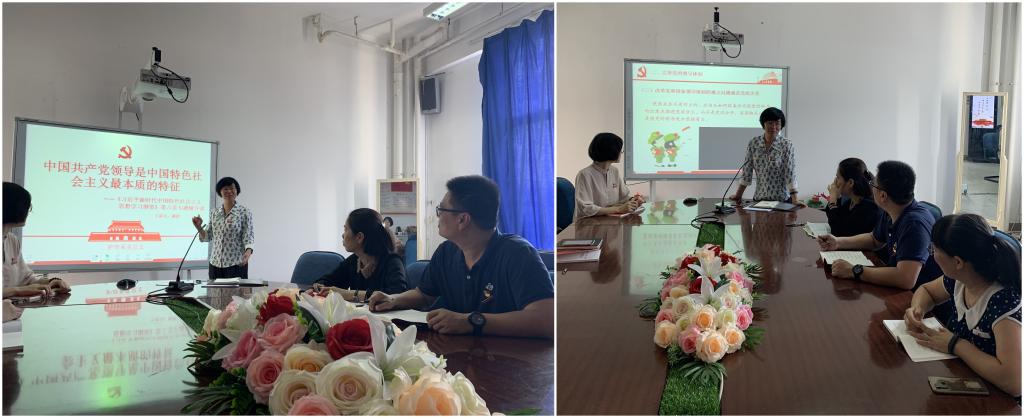 课上,谢涛书记就《习近平新时代中国特色社会主义思想学习纲要》第六章内容——中国共产党领导是中国特色社会主义最本质的特征与大家做了分享。她强调,习近平总书记在党的十九大报告中说道,“党政军民学,东西南北中,党是领导一切的”,这充分说明了我们要把党的领导落实到一切工作当中去。接着,她从坚决做到“两个维护”、完善坚持党的领导的体制机制、全面增强党的执政本领三个方面向我们解读了为什么说中国共产党领导是中国特色社会主义最本质的特征。最后,她强调,中国共产党领导是中国特色社会主义最本质的特征,澄明了中国特色社会主义与中国共产党的根本性联系,也必将推动中国特色社会主义和中国共产党自身的发展和完善。