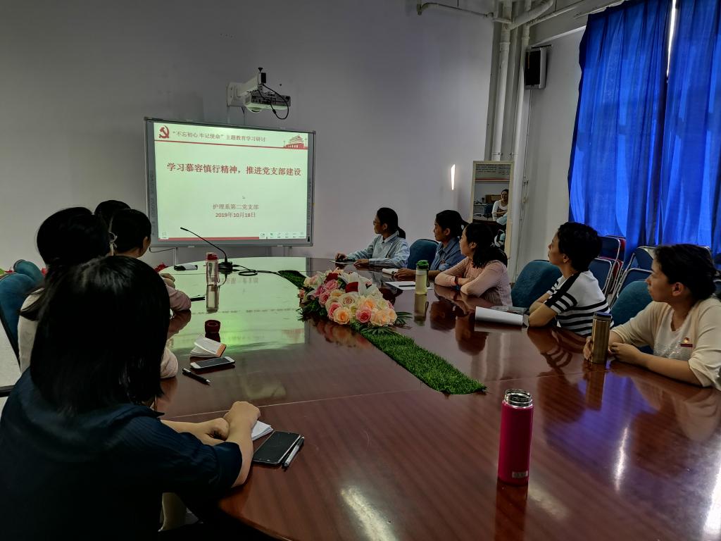 10月18日,护理系第二党支部在护理系会议室开展 “学习慕容慎行先进事迹”专题研讨会,会议由护理系第二党支部书记陈雪珍同志主持,护理系第二党支部全体党员参加研讨。