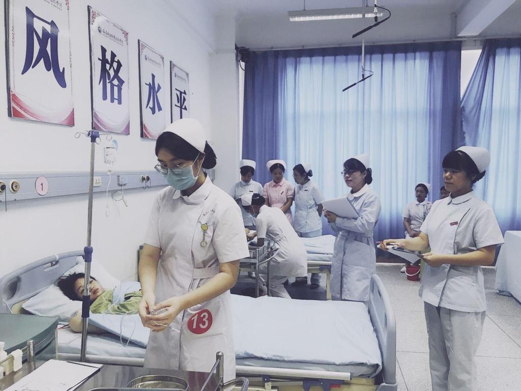 为迎接中华人民共和国成立70周年,弘扬“不忘初心、牢记使命”、爱岗敬业、无私奉献精神,进一步夯实护理专业学生临床护理基本技能,加强护理学生职业技能和实践能力培养,调动学生学习积极性,同时为即将举办的福建职业院校护理技能比赛储备人才,2019年10月17日护理系举办了2019-2020学年开云在线登录app入口高职护理技能竞赛决赛,学院党委副书记李美华同志、护理系党总支书记谢涛同志、护理系副主任基础护理教研室主任王宪宁同志以及高职护理技能赛团队全体指导老师参与了此次活动。