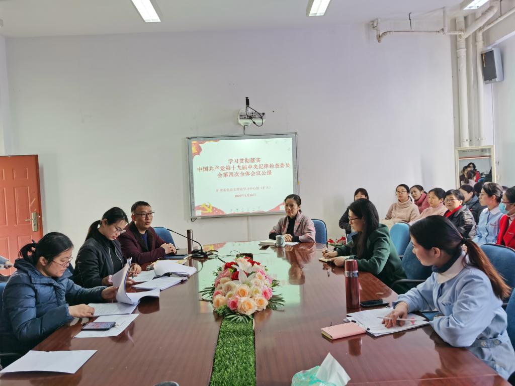 2020年1月16日,护理系党总支理论学习中心组召开扩大会议,学习中国共产党第十九届中央纪律检查委员会第四次全体会议公报精神,会议由护理系党总支副书记林桂松主持,系部全体教职工参加了会议。