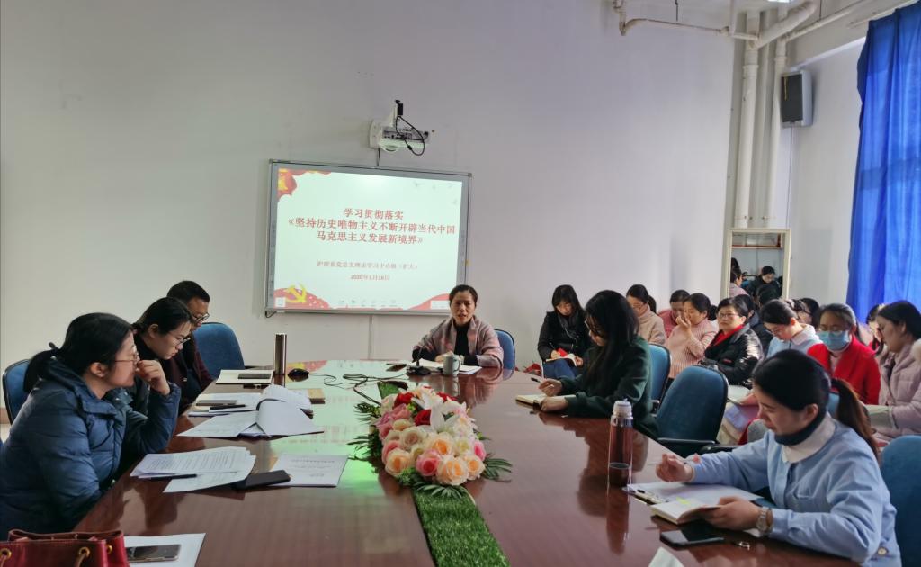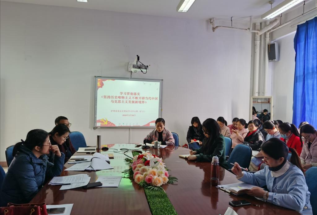2020年1月16日,护理系党总支理论学习中心组召开扩大会议,学习习近平总书记重要文章《坚持历史唯物主义不断开辟当代中国马克思主义发展新境界》,会议由护理系龚海蓉副主任主持,系部全体教职工参加了会议。