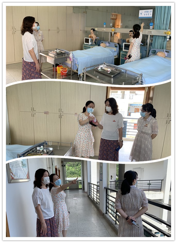 李美华副书记仔细查看了护理系二楼示教室和四楼实训室的实训设备和物品准备情况,并查看疫情防控措施的落实情况,对学生返校复学工作流程、重点环节、关键部位和防控措施等提出了具体指导意见。