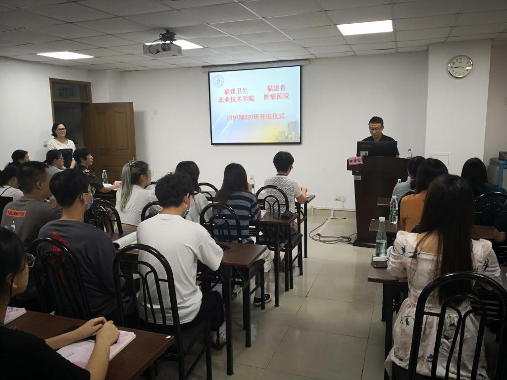9月7日,我院与省肿瘤医院联合开办的2019级护理系专业省肿瘤医院校企合作班在省肿瘤医院正式开班,省肿瘤医院护理部吴美华副主任、陈奇鸿督导兼该合作班班主任、各科室护士长以及我院护理系党总支副书记林桂松、辅导员李晓佳老师参加了开班仪式。