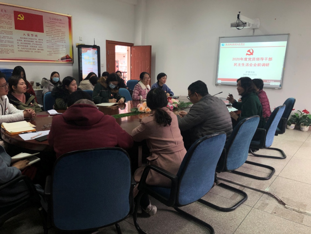 1月5日,为贯彻落实《中共福建省纪委 中共福建省委组织部关于认真开好2020年度全省县以上党和国家机关党员领导干部民主生活会的通知》,切实开好2020年度学院领导班子民主生活会,校党委副书记李美华深入护理学院进行民主生活会会前调研,护理学院党员师生代表、党外代表人士及学生代表参加本次调研。