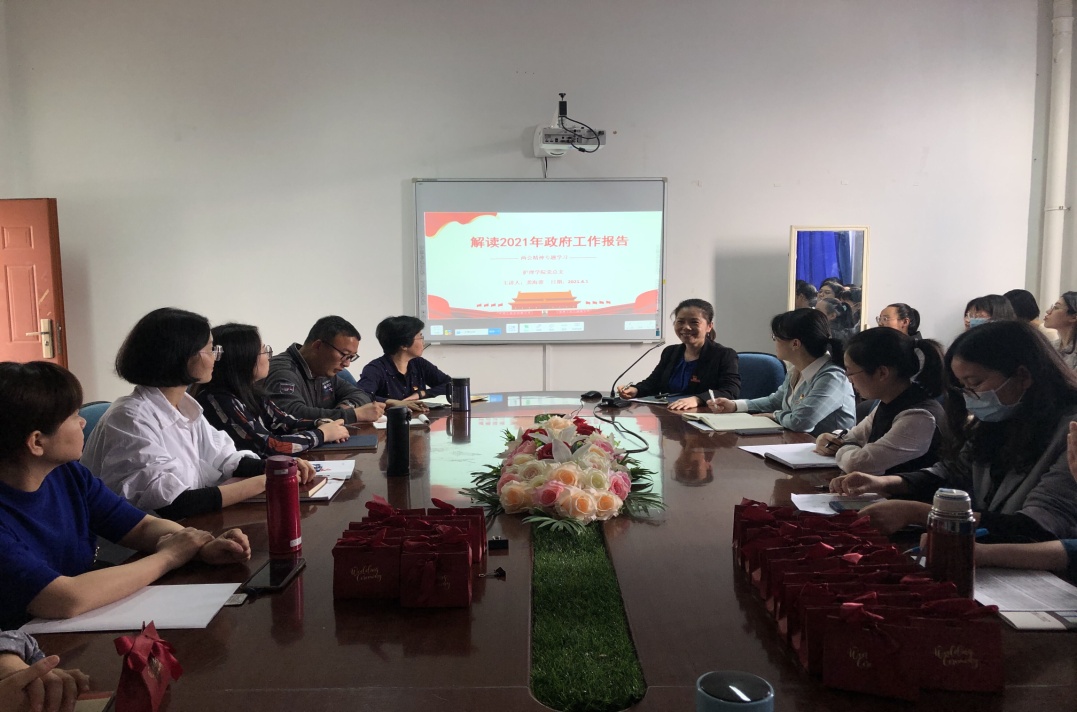 2021年4月1日,护理学院党总支副书记龚海蓉同志开设党课《解读2021年政府工作报告》,对2021两会精神进行了全方位解读,深入分析了政府工作报告等两会热点。