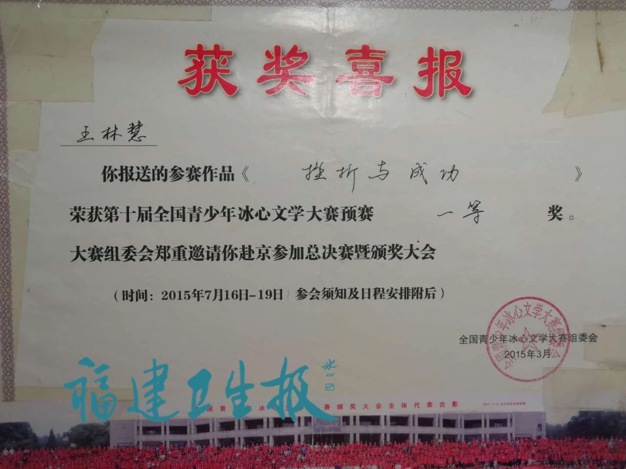 王林慧成绩优异,连年获得奖学金,被评为“三好学生”等荣誉称号。放假期间,她还积极参加社会实践活动,结合专业所学尽力帮助他人。曾获得“美德少年”、“自强之星”等荣誉称号。曾获第十届全国青少年冰心文学大赛预赛一等奖。近日,在宁德市“争做新时代向上向善好青年”主题活动中,她还入选崇德守信好青年。