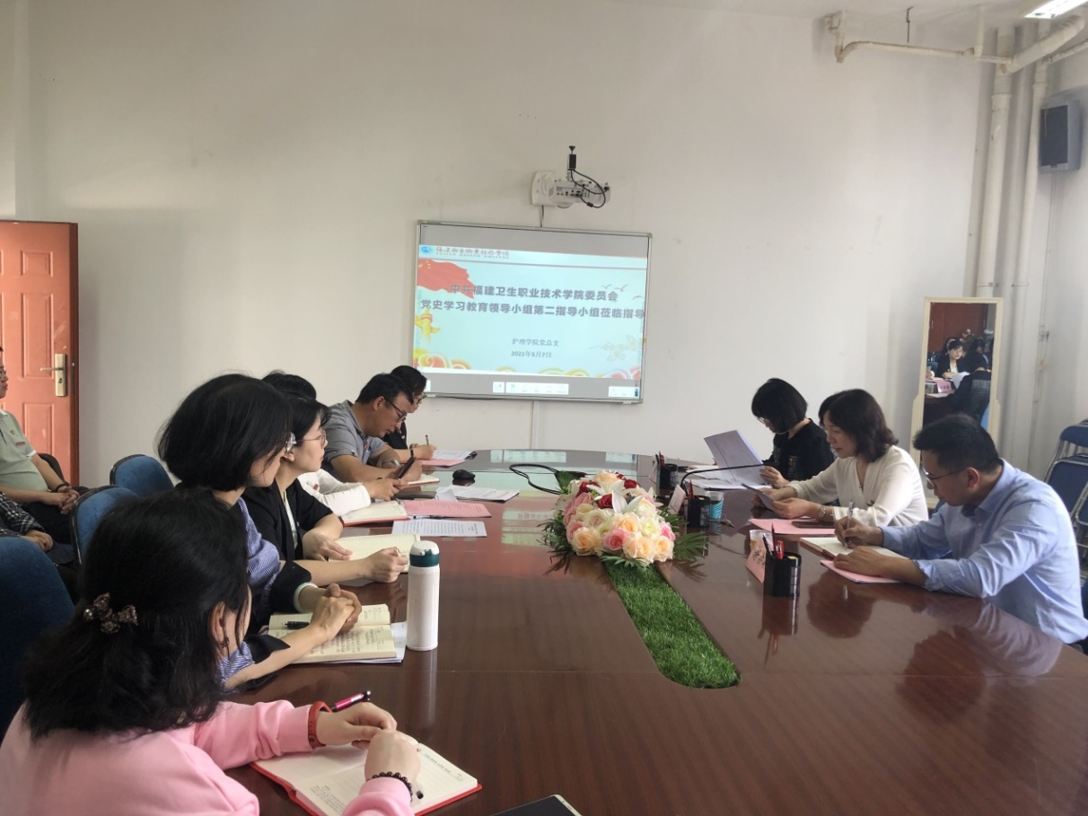 2021年5月7日上午,校党史学习教育指导二组莅临护理学院指导工作,指导小组成员校党委副书记李美华、组织统战部副部长谢宗颖、药学院党总支专职组织员黄嵩梅一行与护理学院党总支党务干部参加了会议,会议由护理学院党总支书记谢涛主持。