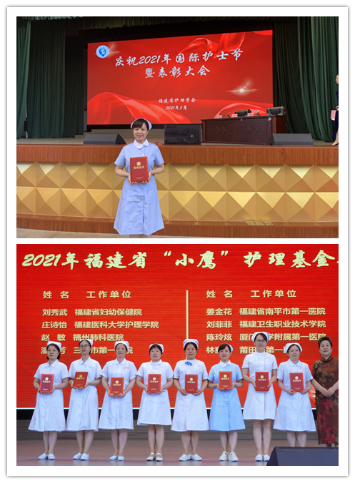 会上共有68名护士以及29家继续护理学教育先进单位受到表彰,开云刘菲菲老师喜获福建省“小鹰”护理基金奖。