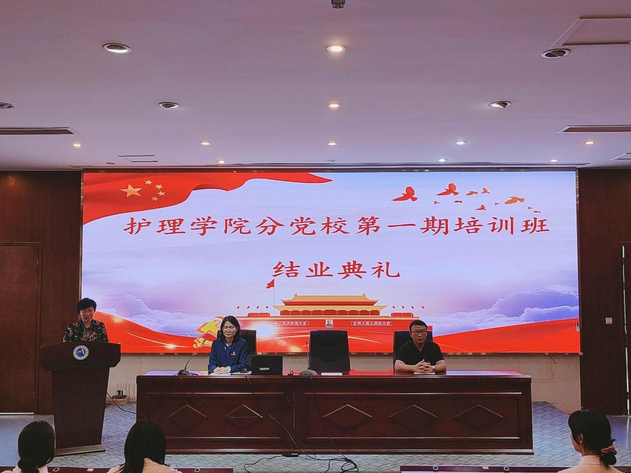 随后,谢涛老师代表护理学院党总支向顺利结业的学员们表示祝贺。她在讲话中指出,分党校开班以来,同学们通过学习,接受党的精神熏陶和洗礼,提升了自己的思想觉悟和精神境界。习近平总书记说“每一代青年都有自己的际遇和机缘,都要在自己所处的时代条件下谋划人生、创造历史”。19级的同学马上要下临床开始实习,谢涛书记向19级的同学强调,在临床中也要继续努力,遵守好各科室的规章制度,学习掌握各个科室的常见病症,把握好当下,努力成为母校的骄傲。20级的同学在校还有一年的时间,要抓紧在校时间,努力学习各专业课的知识,为明年的下临床实习,打好坚实基础。