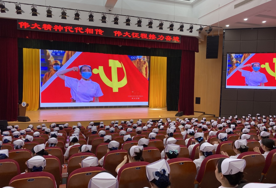接着,全体毕业生一同欣赏庆祝中国共产党成立100周年文艺演出《伟大征程》情景交响歌舞《人民至上》精彩剪辑。一身白衣,一顶燕尾帽,一句誓词,今天的传光授帽,传承的不仅仅是敬佑生命、救死扶伤、甘于奉献、大爱无疆的南丁格尔精神,更重要的是传承我们中国护理人在中国共产党的领导下,投身伟大战疫实践中所形成的人民至上、生命至上、舍生忘死、不负重托的精神理念。