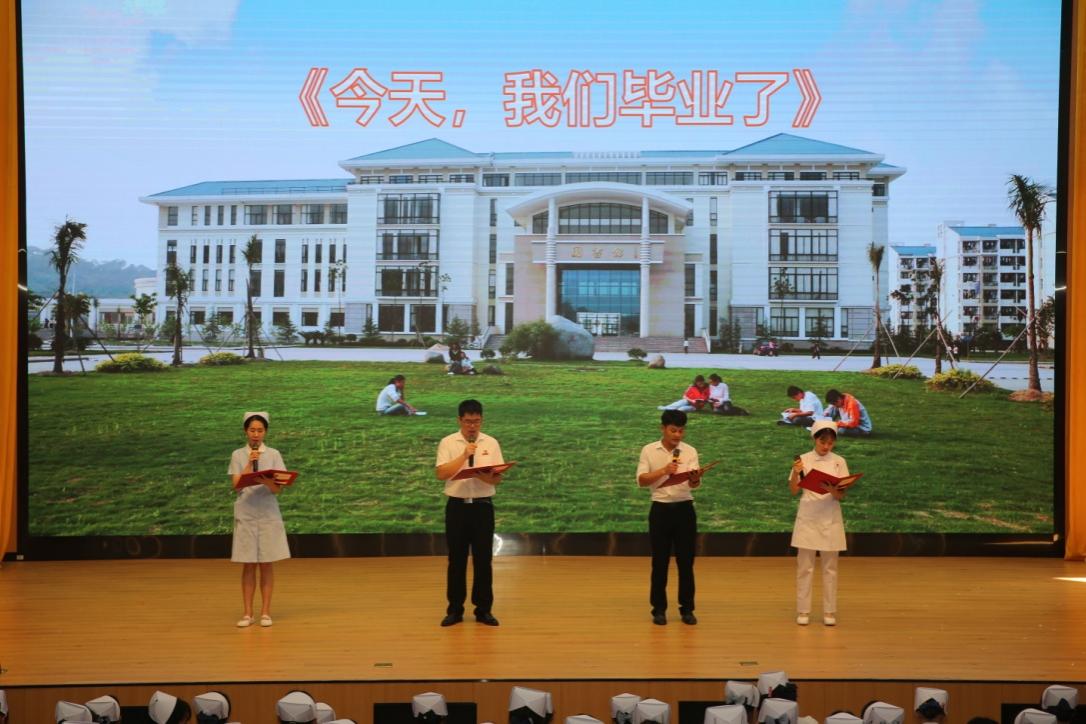 随之,大屏幕上播放来自护理学院师生们的毕业祝福视频,护理学院师生代表同台朗诵《今天,我们毕业了》,师长们的谆谆教诲将成为同学们的指路明灯,学弟学妹们的毕业祝福将成为同学们的前进力量。