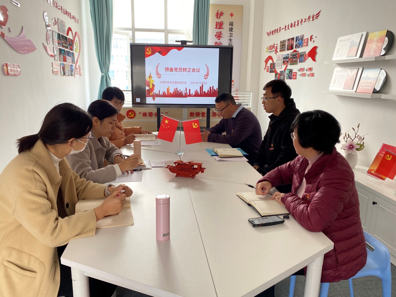 2021年12月9日,护理学院学生第四党支部召开预备党员转正大会,大会讨论并审议了预备党员马扬同志转为中共正式党员事宜。护理学院学生第四党支部全体党员参加了本次会议。会议由支部书记彭琰同志主持。