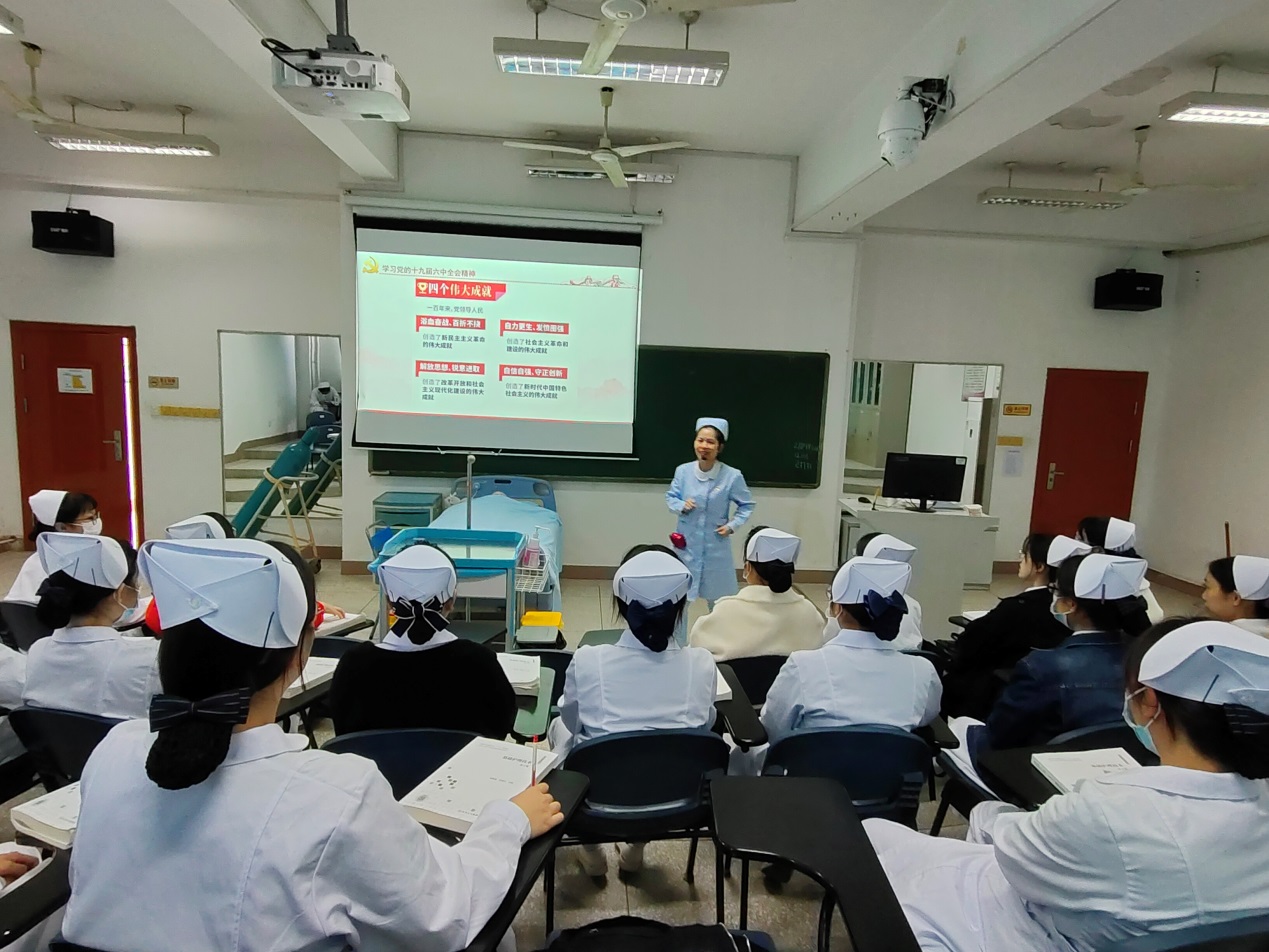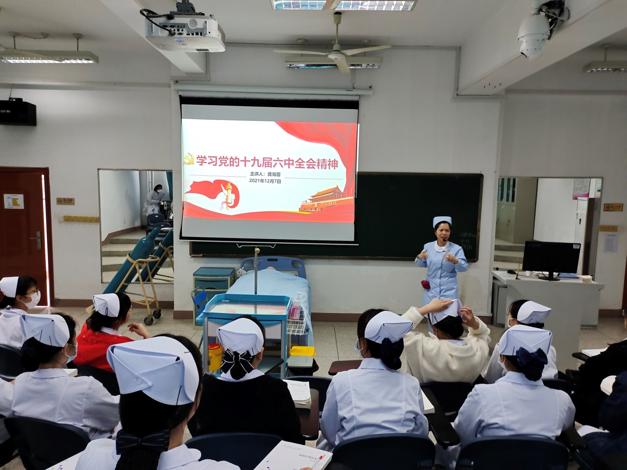 为继续深化党史学习教育,学习党的十九届六中全会精神,在传承红色基因中增强守初心、担使命的思想自觉和行动自觉。2021年12月7日,护理学院院长龚海蓉为联系班级讲授形势与政策课程——学习党的十九届六中全会精神。
