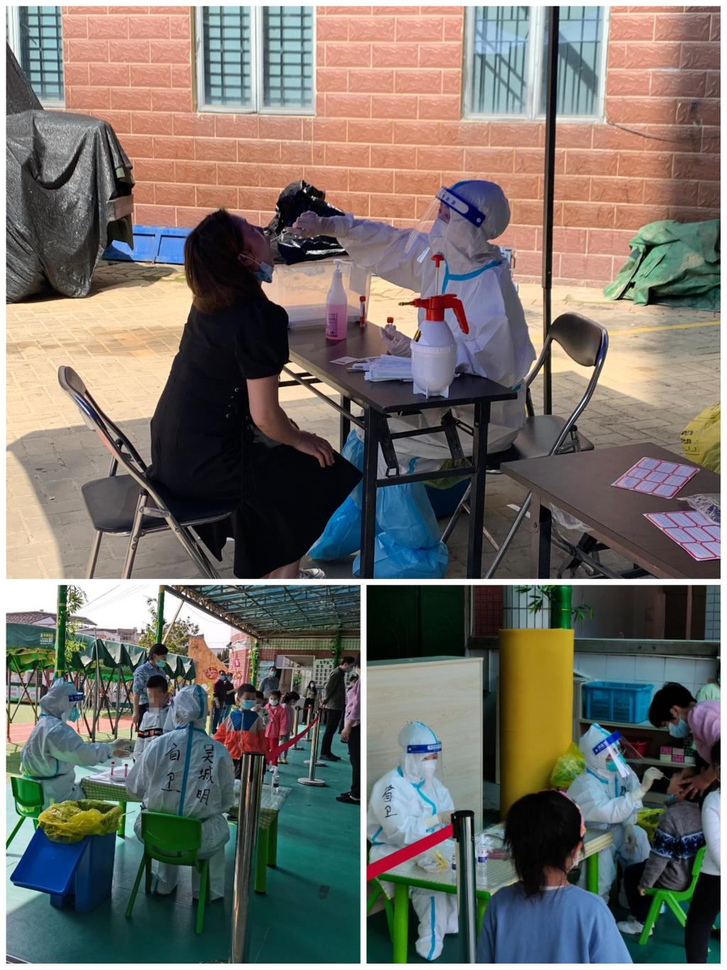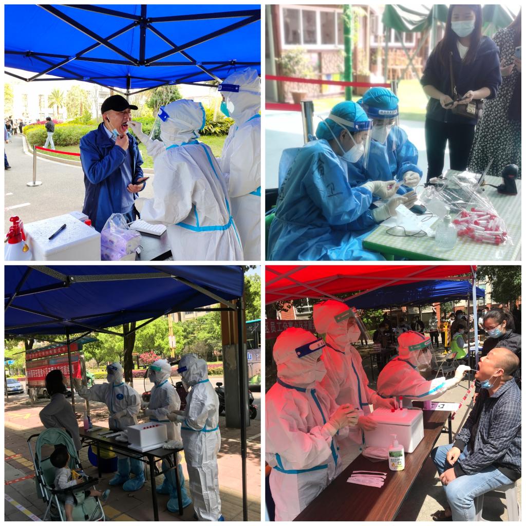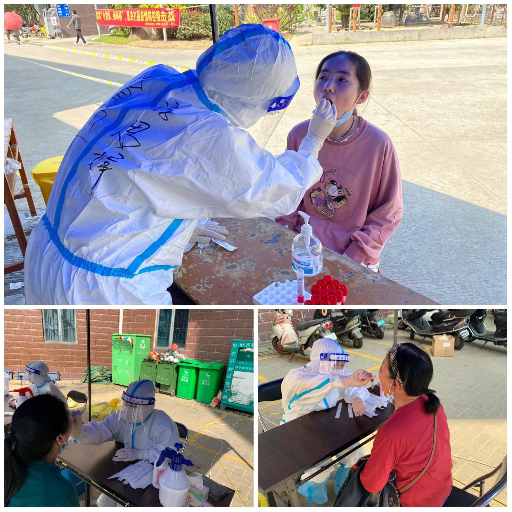 3月19日早上8点,龚海蓉带领124名师生志愿者奔赴闽侯县甘蔗街道和荆溪镇八十多个核酸采样点开启一整天紧张、忙碌而又充满挑战的核酸检测支援工作。