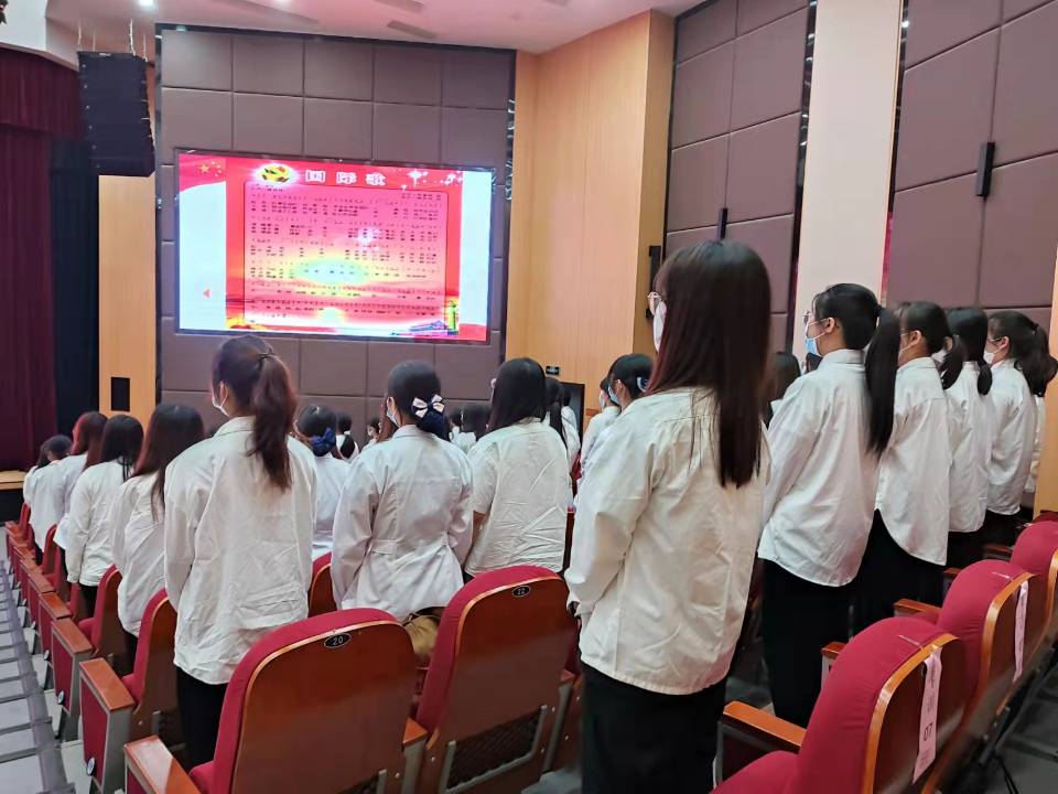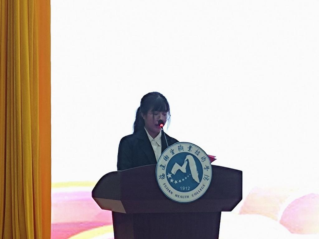 随后,学员代表李艳玲上台发言,她代表全体学员向党组织的精心培养表示感谢,并做出承诺:“作为一名医学生,将学好专业课程与技能,以优秀党员为榜样,积极带头发挥先锋模范作用,用所学所知回报祖国、回报社会、回报学校对我们的信任。”