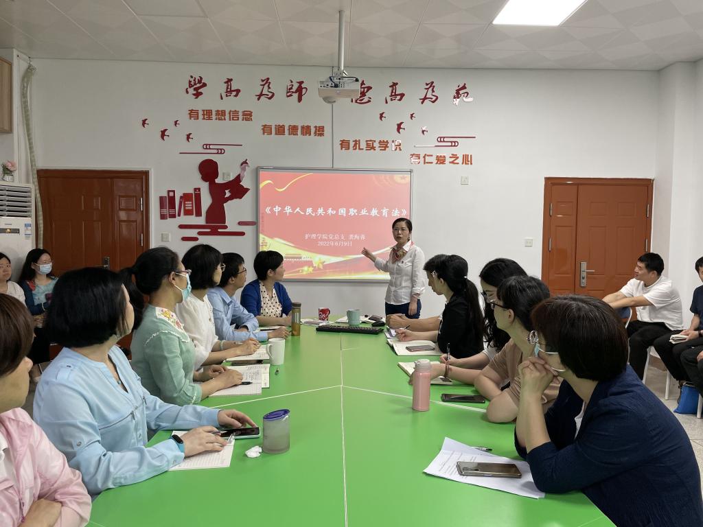 为深入学习贯彻新修订的《职业教育法》,全面准确把握新法规的内容精髓,扎实推动学院高质量发展,2022年6月9日,护理学院院长、党总支副书记龚海蓉以深入学习贯彻《中华人民共和国职业教育法》为题,为全体教职工讲授了一节生动的党课。