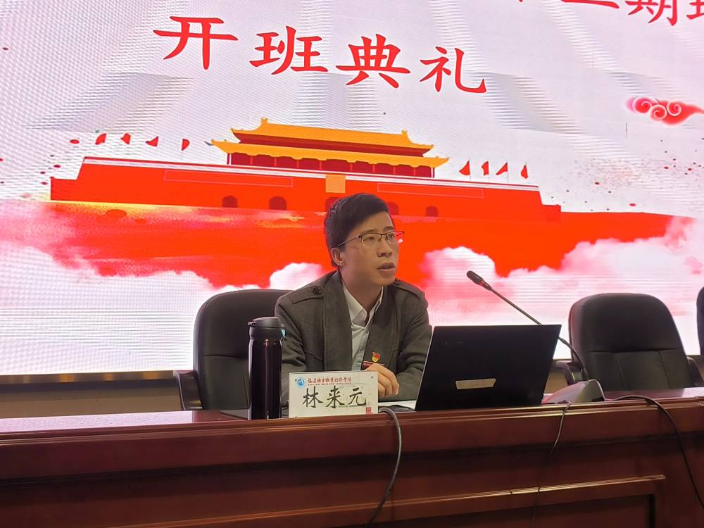开班典礼结束后,党总支副书记林来元以《端正入党动机,争做合格党员》为题,围绕中国共产党的三大历史贡献、对党的认识以及党员的权利与义务、树立正确的入党动机、如何以实际行动争取早日入党四个内容为培训班全体学员上培训班第一次党课,引导同学们进一步端正入党动机,树立远大理想,以实际行动争取早日入党。