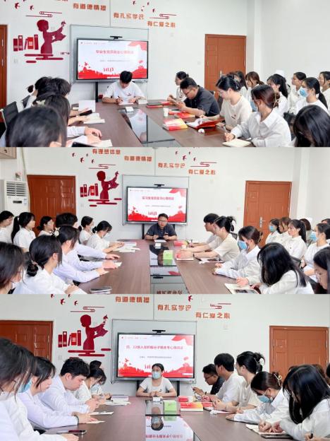 实习班辅导员卓立涛以学生下临床实习的心理情绪变化为重点,讲述学生在实习过程中会遇到学习、就业、人际关系等方面的压力,引导学生在实习中应积极应对困难,注重培养医护技能。