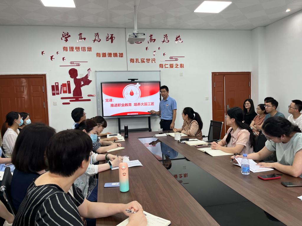 为深入学习贯彻党的二十大精神和习近平总书记关于职业教育的重要指示批示精神,大力弘扬劳模精神、劳动精神、工匠精神,护理学院副院长林浩为全院教职工讲授《推进职业教育,培养大国工匠》主题党课。