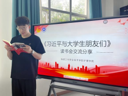 为进一步深刻感悟习近平总书记对大学生的亲切关怀和殷切期望,从中汲取踔厉奋发的青春力量,为中国式现代化挺膺担当。护理学院将原著部分扫描印发,发放给同学们阅读,于2024年5月27日在护理学院201会议室开展《习近平与大学生朋友们》读书分享会。