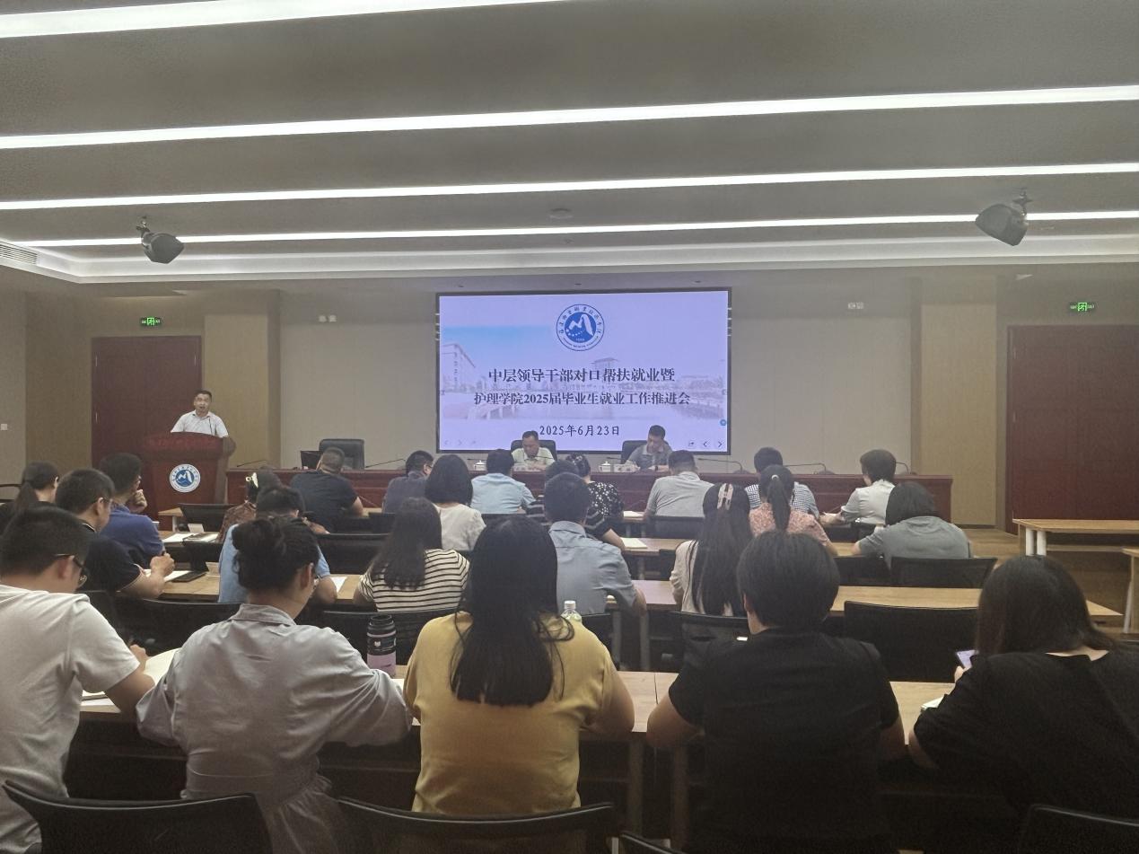 为紧抓毕业生离校前就业窗口期,全力推动2025届毕业生高质量充分就业,6月23日,护理学院召开2025届毕业生就业推进会,全面部署冲刺阶段任务。校党委书记曾武祈、副校长周雄出席会议,对口帮扶行政处室、学院班子成员及毕业班辅导员参会。