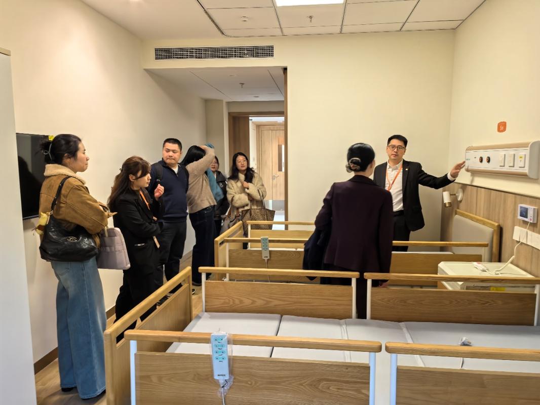 交流环节结束后,郑栋与班主任曾超情共同带队,引领学校教师团队参观了正在筹备中的学生宿舍和专属学习场所。宿舍区域温馨舒适,配备了完善的适老化生活设施和安全保障系统,学习场所则兼具理论授课、技能实训等多功能需求,充分考虑了教学与实践的融合需求。参观过程中,郑栋详细介绍了泰康之家·福园的园区运营现况,包括康养服务体系、岗位设置、服务流程等核心内容,让教师们直观了解了园区的运营模式和岗位需求,为后续教学内容优化和实践指导提供了第一手资料。
