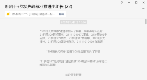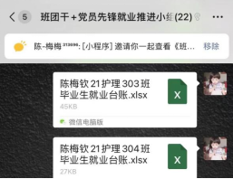 组建先锋队后,各小组长通过毕业生就业台账“一人一档”充分了解了各自对接的毕业生当前的就业情况和就业意向,并建立各个分队小组群,针对学生的就业意愿和需求,精准的帮扶未就业的同学。
