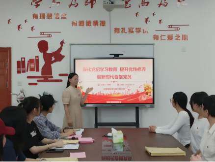 李英分别从严守党的纪律、保持共产党员的高尚品,坚定理想信念、强化党性修养,勇于担当、善于作为、发挥共产党员的先锋模范作用三个方面进行解读。李英强调,党的纪律是党的生命线,一名合格的共产党员,要严守政治纪律和政治规矩,坚决维护党的领导和党的事业,要严守组织纪律,服从组织安排,认真履行职责,要加强党纪学习教育,增强遵规守纪自觉。
