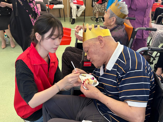 随后,活动进入了温馨感人的庆生环节。在欢快的生日歌声中,几位即将迎来生日的爷爷奶奶被请上台,院长亲自推着精心准备的生日蛋糕缓缓步入舞台中央。在大家的祝福声中,爷爷奶奶们许下心愿,幸福地吹灭了蜡烛。志愿者与老师细心地将蛋糕分发给每一位老人,甜蜜的滋味在舌尖绽放,更在心头荡漾。