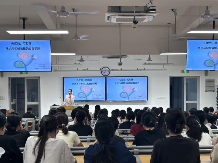 邓钰博士开展《先接纳,后改善:焦虑与抑郁情绪的自我调适》,在讲座中,深入剖析了焦虑的来源与症状,帮助同学们追溯焦虑情绪的根源,并详细阐述了抑郁的多样表现,使听众对这两种心理健康问题有了更为深刻的认识。邓钰博士还分享了一系列调适方法,包括认知重构、情绪调节技巧及积极参与社交活动等,旨在帮助同学们建立积极的应对策略,提升自我调适能力。