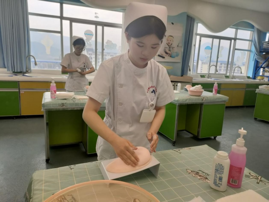 本次竞赛对象为22级助产专业全体学生,竞赛包括初赛、决赛两个环节。初赛共选拔校内班和校企合作班共24名同学进入决赛,决赛项目为产妇堵奶手法操作。他们在这里展示了扎实的专业技能和敏锐的临床思维能力。