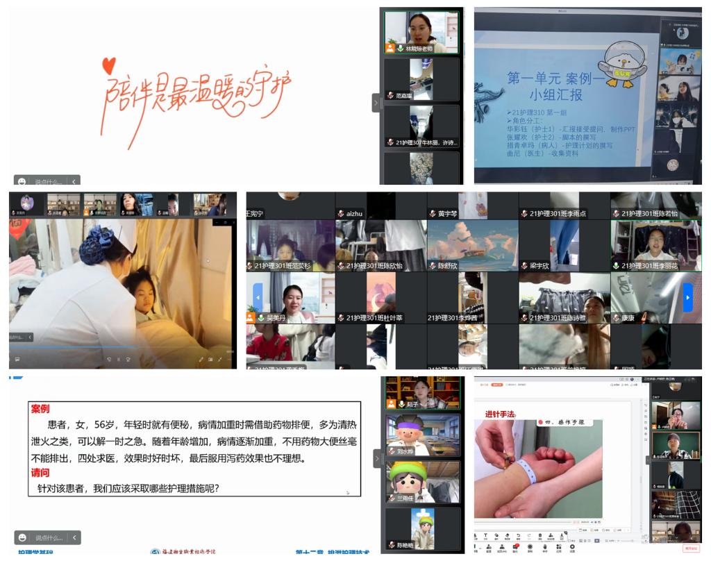 “停课不停教、停课不停学”,自学校启动线上教学以来,护理学院积极组织教师发挥线上网络课程平台的优势,不断创新教学的形式和手段,积极探索“有效教学”+“精准指导”线上实训教学改革,让同学们在汲取知识的同时,还可以感受到老师们的亲切问候和浓浓牵挂。