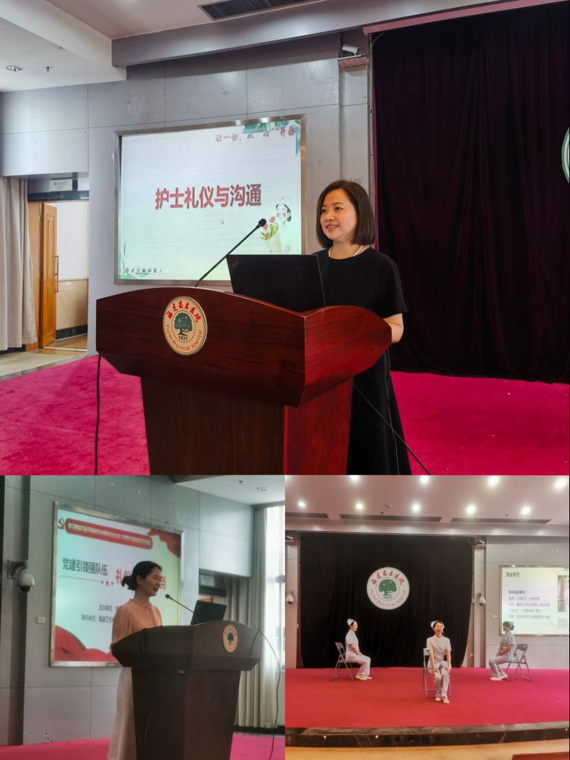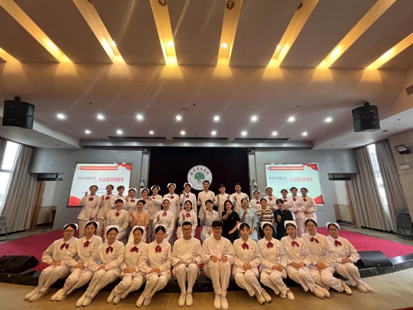 为学习贯彻习近平新时代中国特色社会主义思想主题教育,更好开展党建活动,增强党组织的凝聚力和战斗力。2023年7月27日,护理学院第一党支部应福建省立医院护理部邀请,为福建省立医院新职工护士开展“以心传礼塑天使,以礼相伴传温情”护理礼仪与沟通培训。