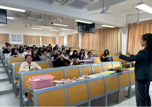陈璟老师在讲座上毫无保留,倾囊相授,介绍了托育园需遵循幼儿身心发展特点和规律,根据各年龄段婴幼儿动作发展目标,以游戏为基本活动,创设不同水平层次挑战场景、自主开放的婴幼儿集体活动。并精心设置了小情景模拟,同学们在情景模拟中积极展现自我,讲座现场气氛十分活跃。