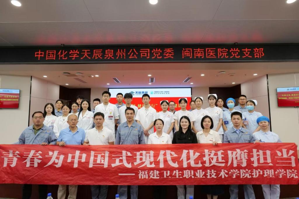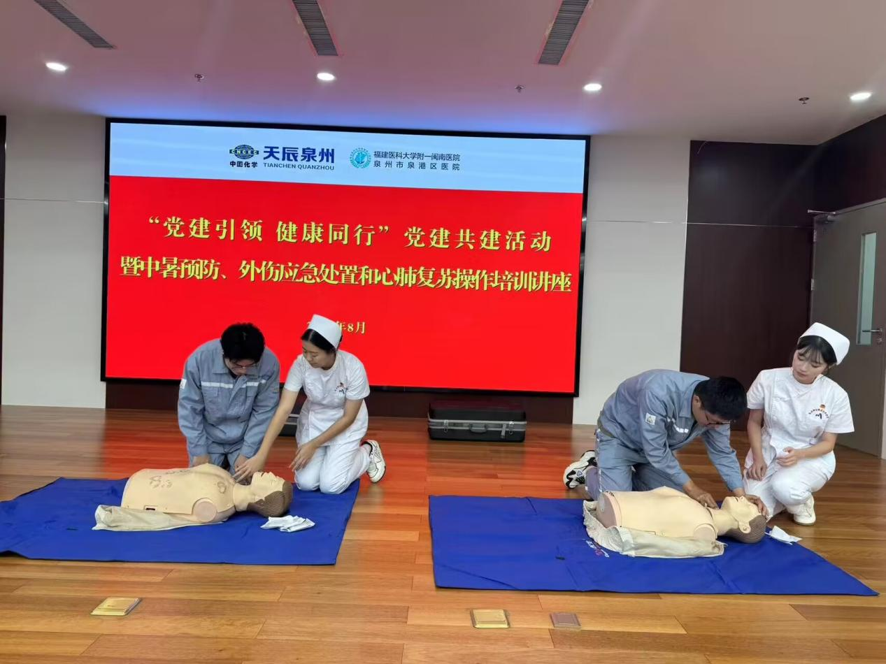 在2024年8月9日下午,开云在线登录app入口护理学院第二党支部副书记林婕老师带领护理学院“梦飞天使”志愿服务队的队员们携手福建医科大学附一闽南医院泉州市泉港区医院一同前往中化学天辰(泉州)新材料有限公司为职工开展医学知识宣教与CPR的演示与教学活动。