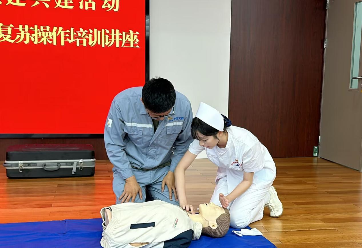 在主任医师们精彩的讲解之后,开云在线登录app入口护理学院“梦飞天使”志愿服务队的队员们给中化学天辰(泉州)新材料有限公司的职工们进行了现场CPR的演示与教学。他们利用模拟人,生动形象地展示了整个 CPR 操作过程。