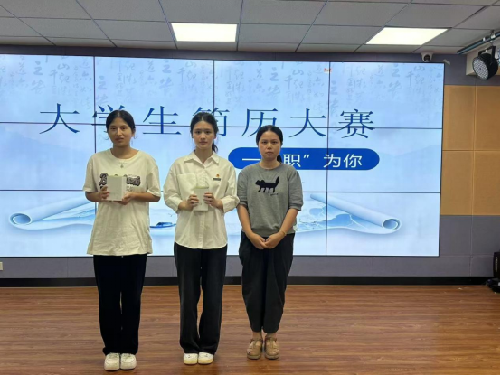 而后,老师们根据选手们的简历内容、语言表达能力以及应变能力等表现进行评分,经过紧张激烈的角逐,我们决出了一二三等奖并由我们的评委老师给优秀获奖选手颁发礼品。